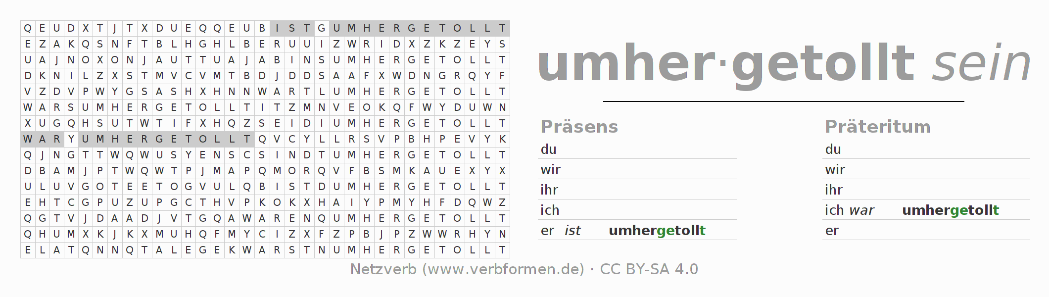 Lösung des Suchsels für die Verbkonjugation von umhertollen