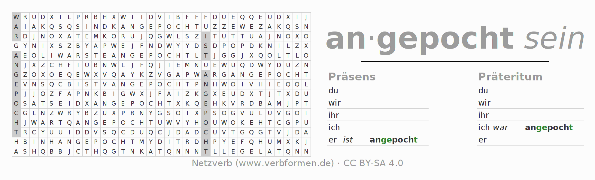 Lösung des Suchsels für die Verbkonjugation von anpochen