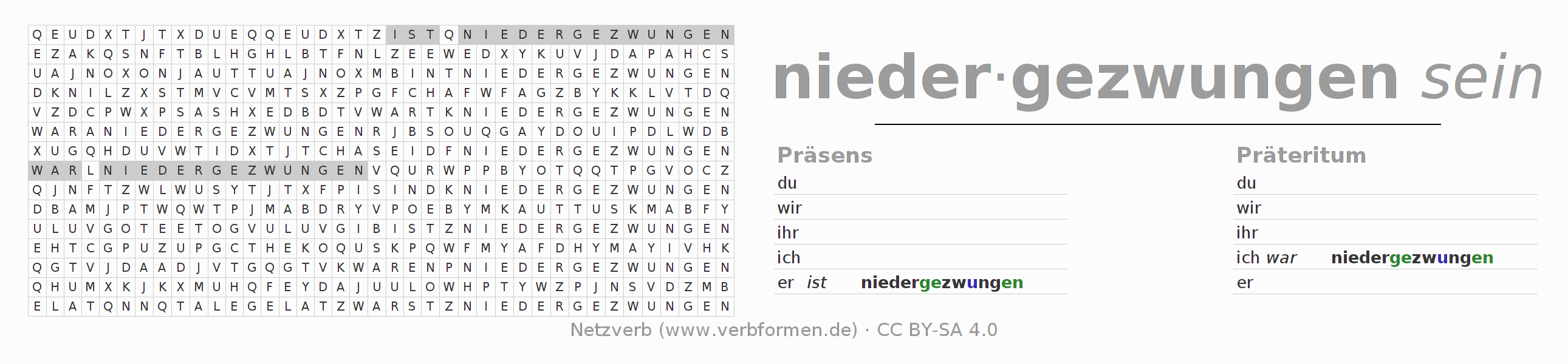 Lösung des Suchsels für die Verbkonjugation von niederzwingen