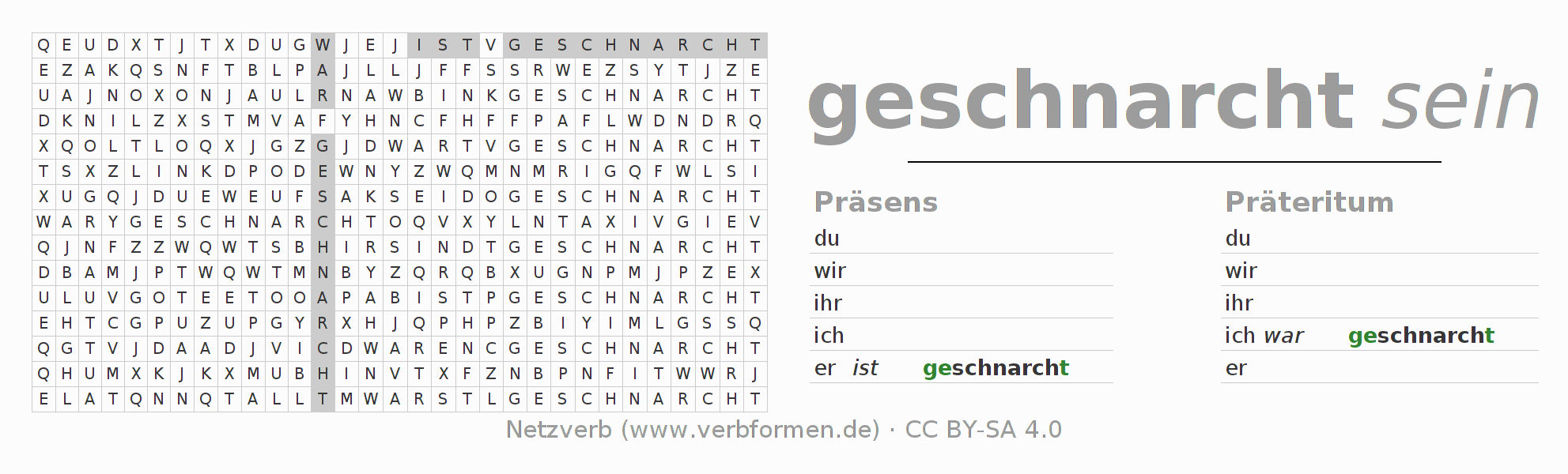 Lösung des Suchsels für die Verbkonjugation von schnarchen