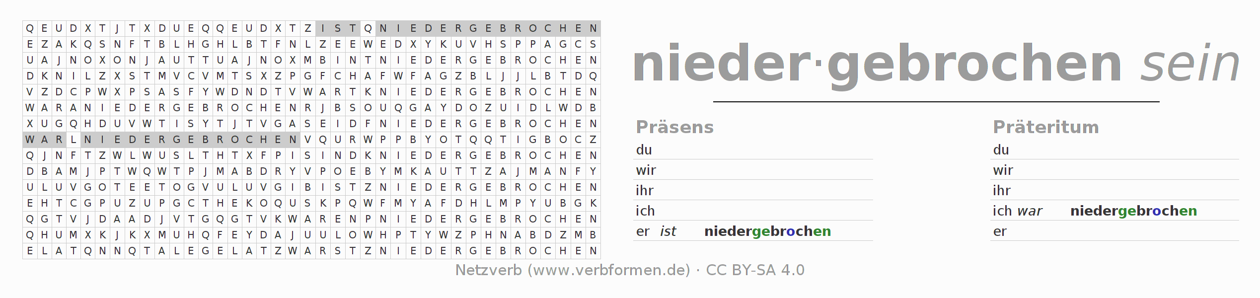 Lösung des Suchsels für die Verbkonjugation von niederbrechen (hat)