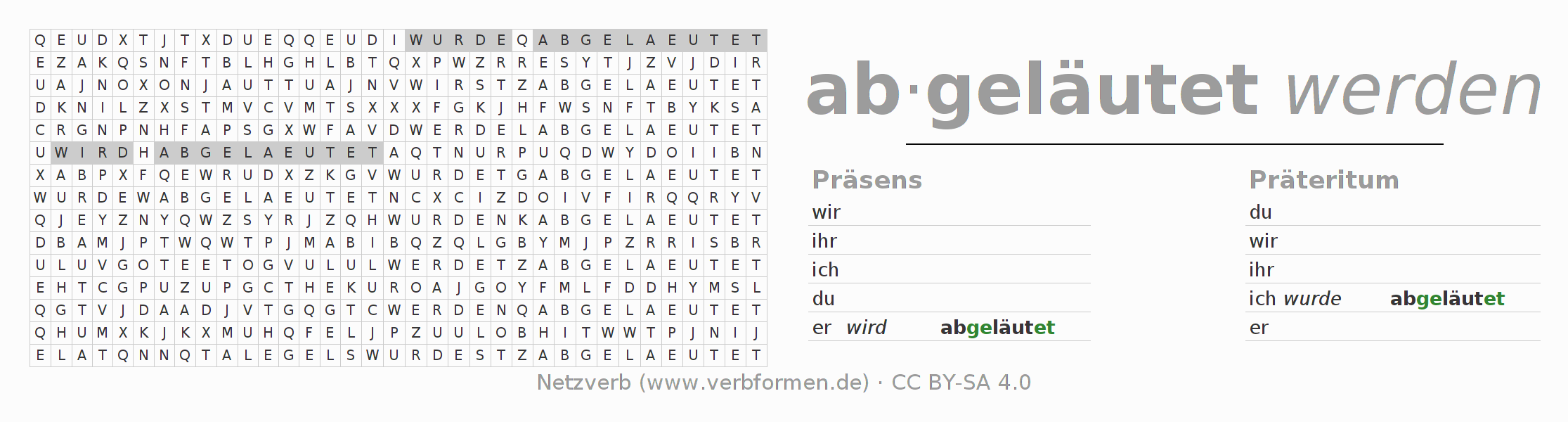 Suchsel, Suchworträtsel für alle Formen des Verbs abläuten