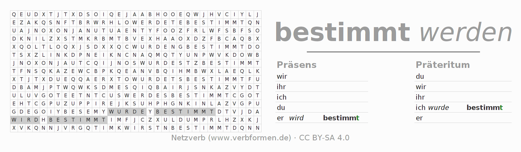 Suchsel, Suchworträtsel für alle Formen des Verbs bestimmen