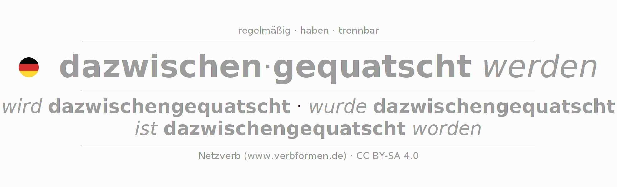 Die Verbtabellen fassen alle Verbformen des Verbs dazwischenquatschen übersichtlich in einer Tabelle zusammen.