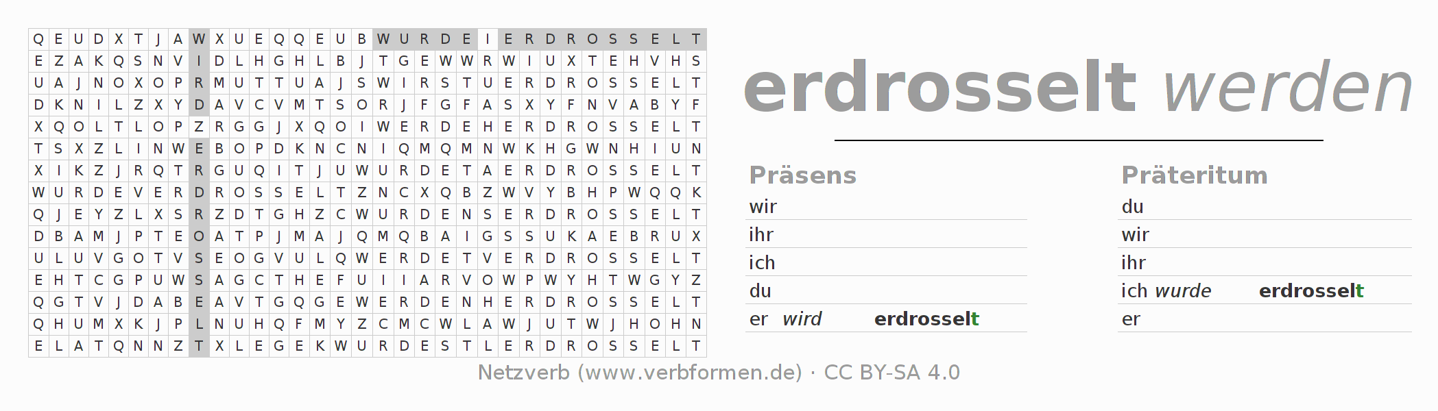 Mit diesen Wortsuchrätseln kann man auf herausfordernde Art und Weise die Konjugation des deutschen Verbs erdrosseln erlernen.