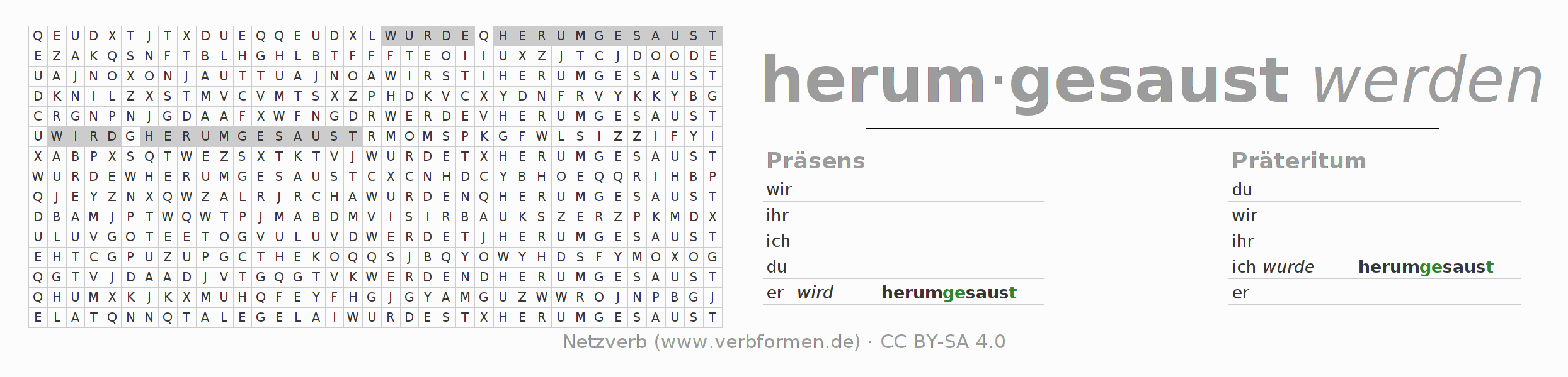 Mit diesen Wortsuchrätseln kann man auf herausfordernde Art und Weise die Konjugation des deutschen Verbs herumsausen erlernen.