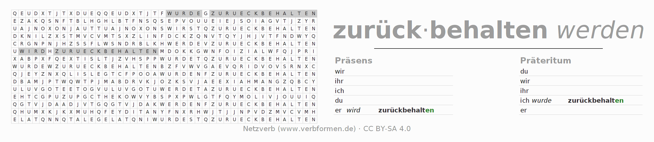 Suchsel, Suchworträtsel für alle Formen des Verbs zurückbehalten