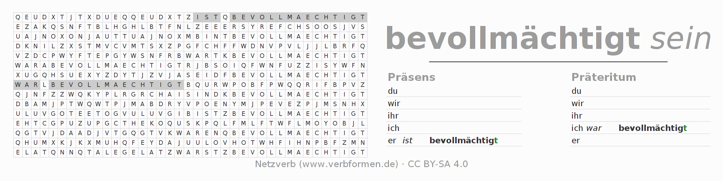 Suchsel, Suchworträtsel für alle Formen des Verbs bevollmächtigen