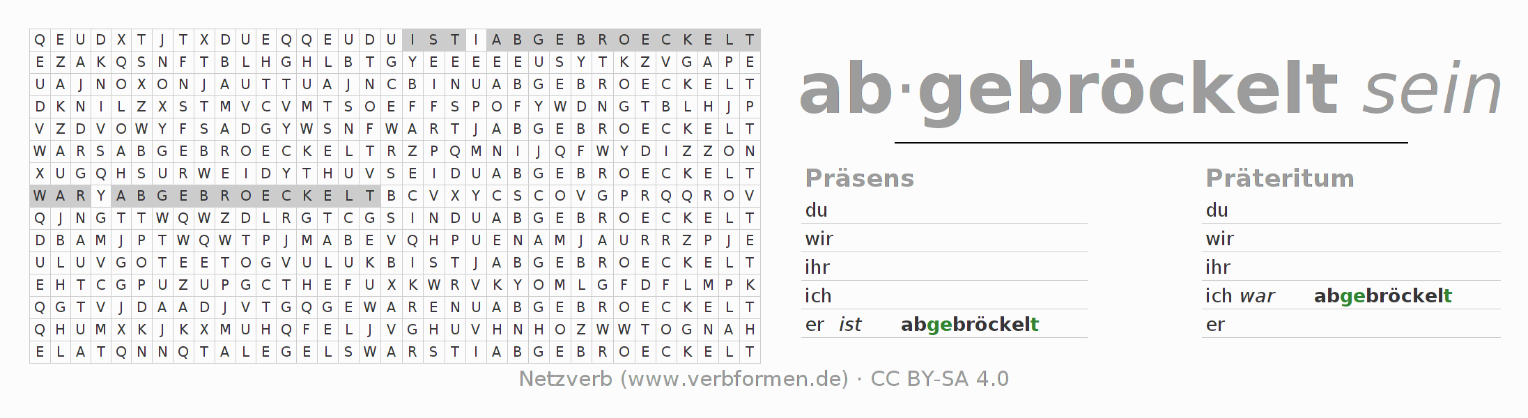 Suchsel, Suchworträtsel für alle Formen des Verbs abbröckeln (ist)