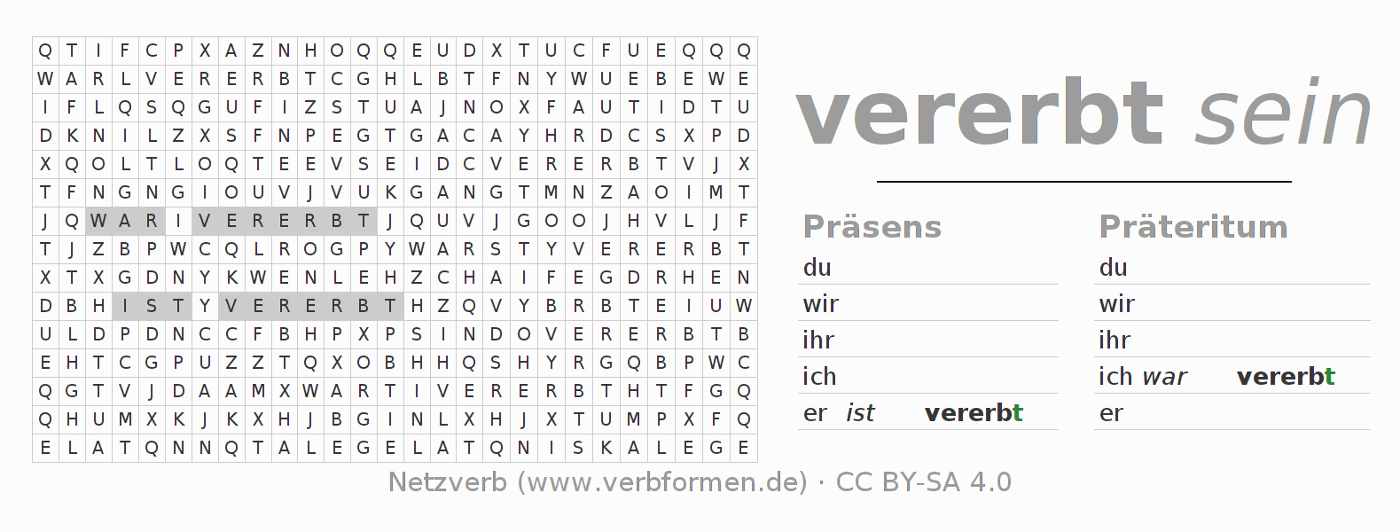 Mit diesen Wortsuchrätseln kann man auf herausfordernde Art und Weise die Konjugation des deutschen Verbs vererben erlernen.