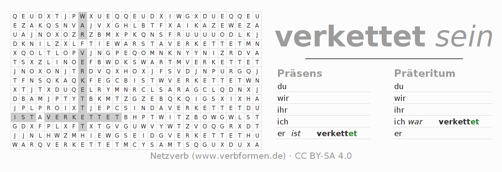Mit diesen Wortsuchrätseln kann man auf herausfordernde Art und Weise die Konjugation des deutschen Verbs verketten erlernen.