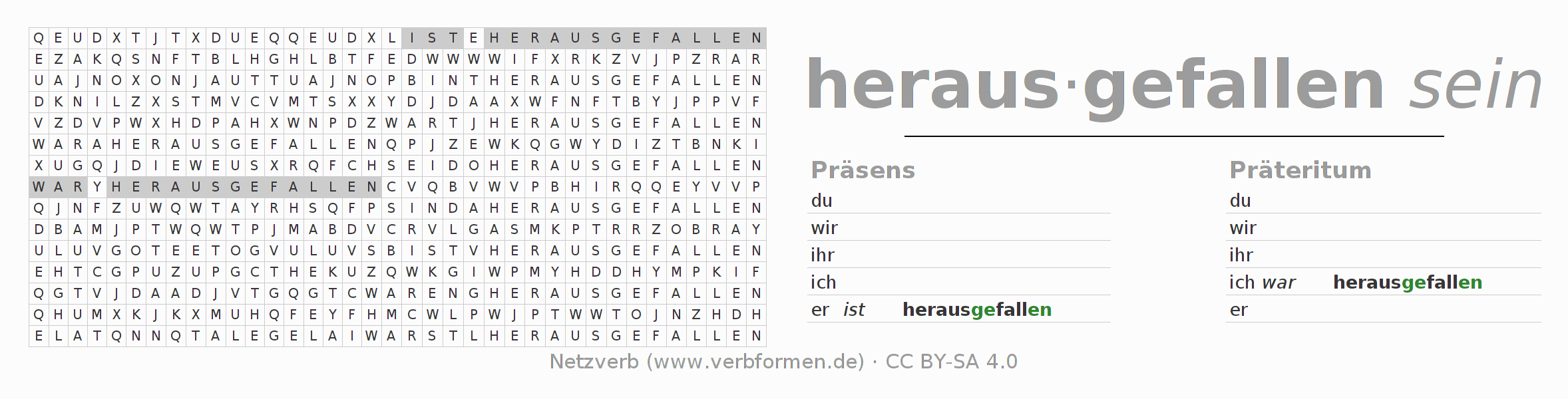 Suchsel, Suchworträtsel für alle Formen des Verbs herausfallen