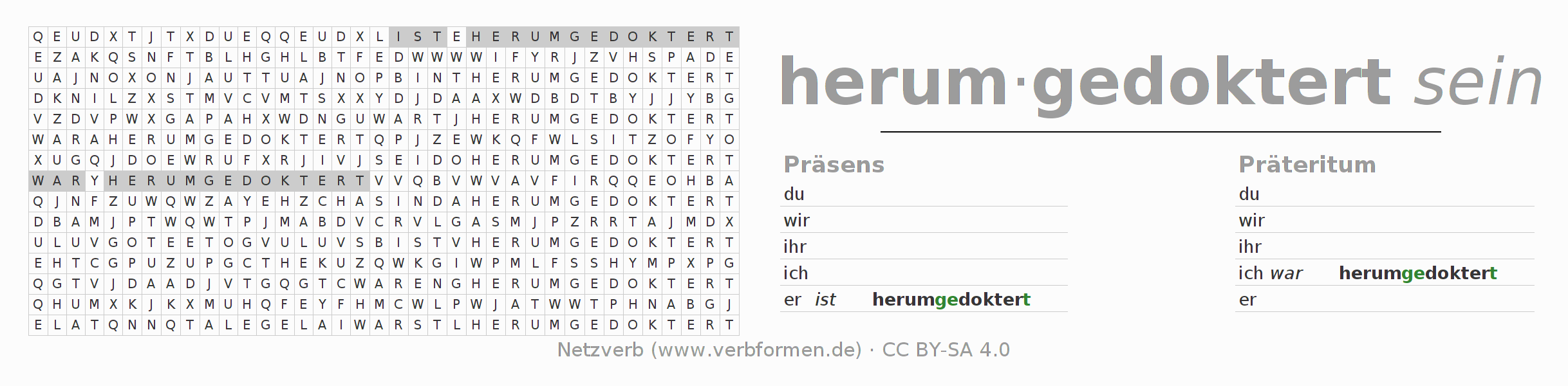 Suchsel, Suchworträtsel für alle Formen des Verbs herumdoktern