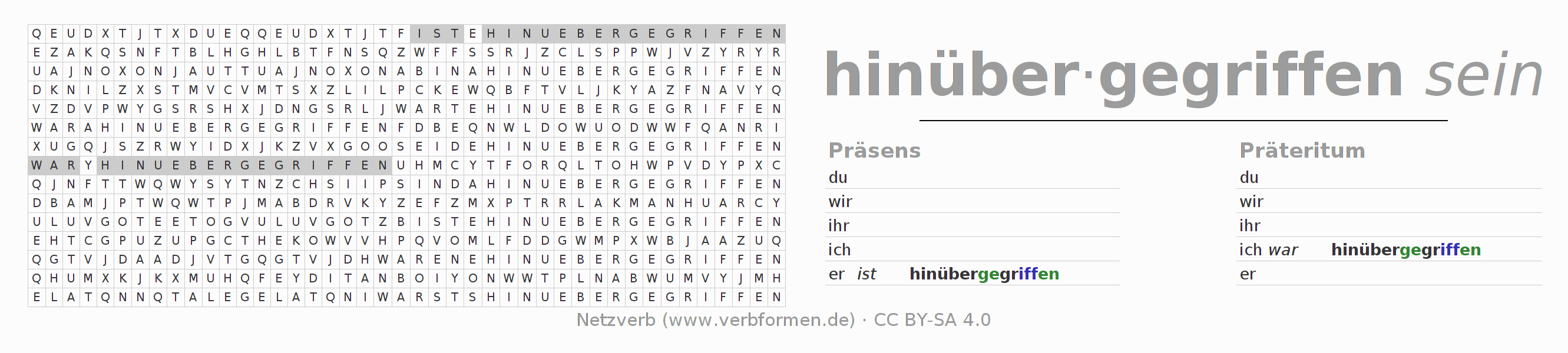 Suchsel, Suchworträtsel für alle Formen des Verbs hinübergreifen
