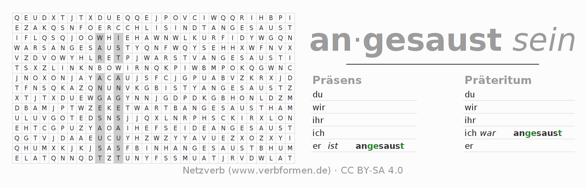 Suchsel, Suchworträtsel für alle Formen des Verbs ansausen
