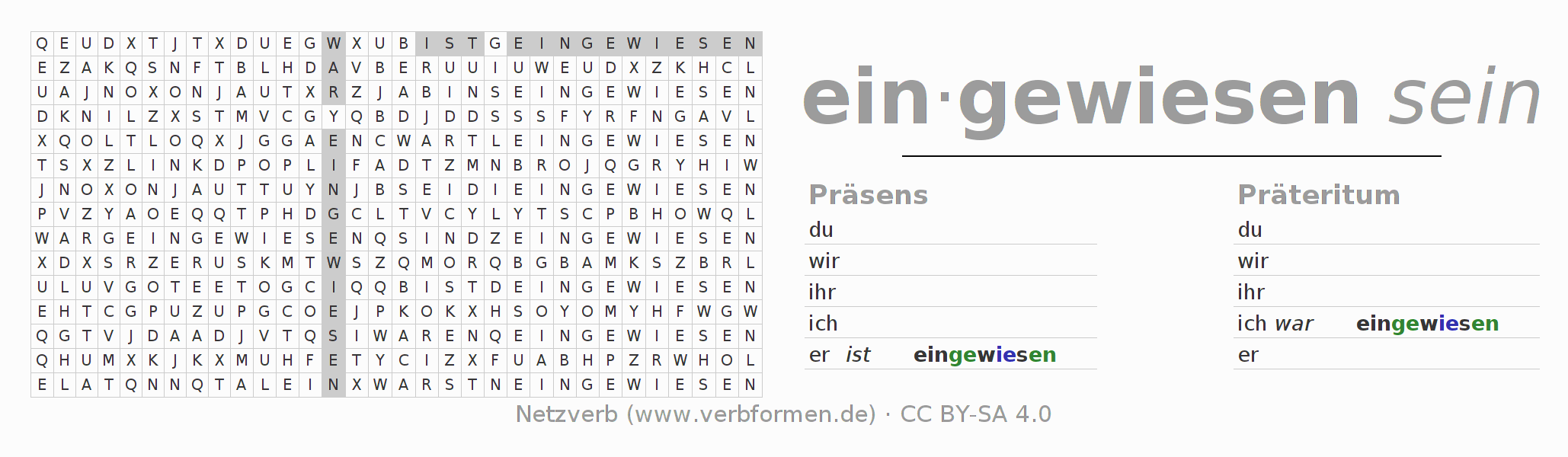 Suchsel, Suchworträtsel für alle Formen des Verbs einweisen