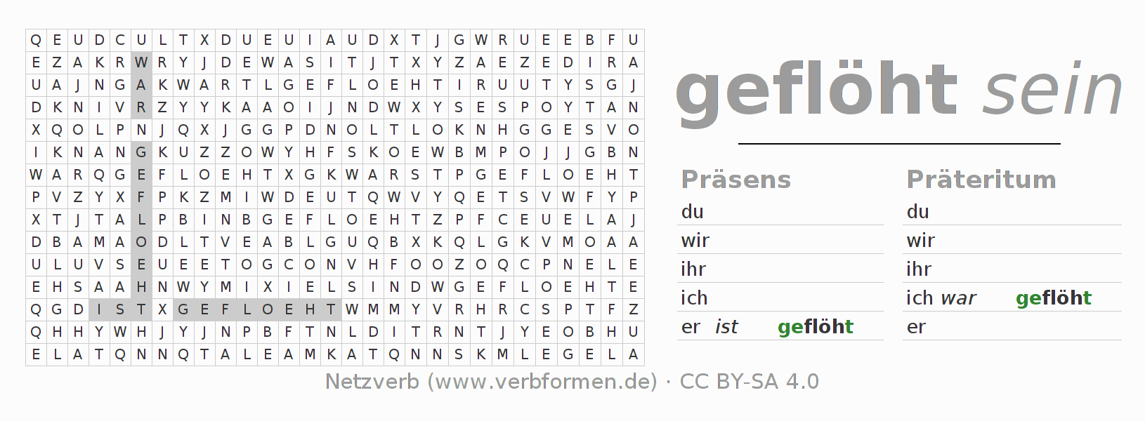 Suchsel, Suchworträtsel für alle Formen des Verbs flöhen