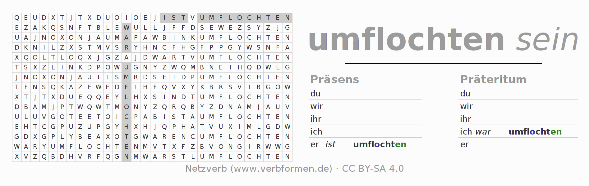 Suchsel, Suchworträtsel für alle Formen des Verbs umflechten
