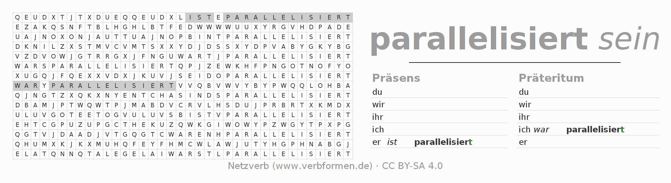 Suchsel, Suchworträtsel für alle Formen des Verbs parallelisieren