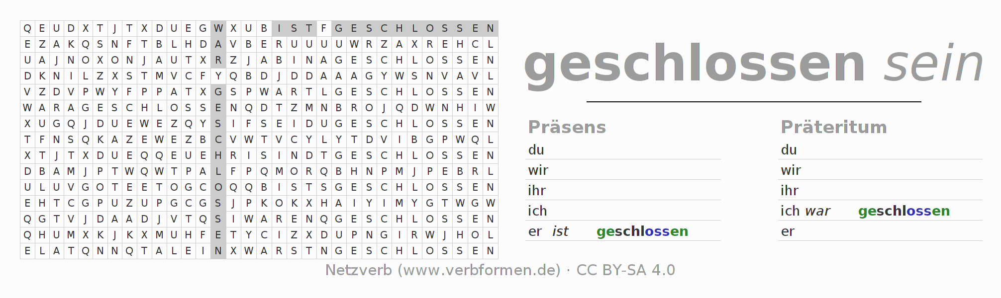 Suchsel, Suchworträtsel für alle Formen des Verbs schließen
