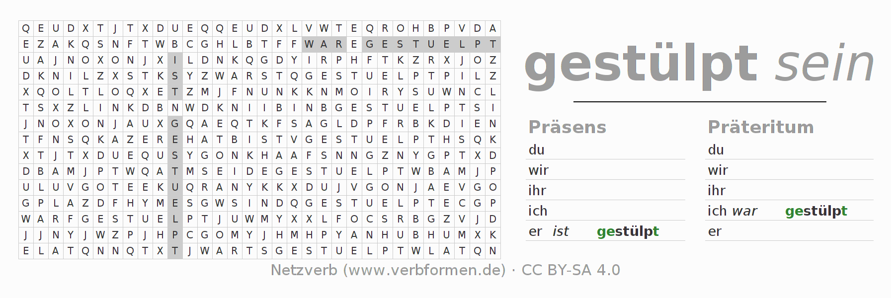 Suchsel, Suchworträtsel für alle Formen des Verbs stülpen