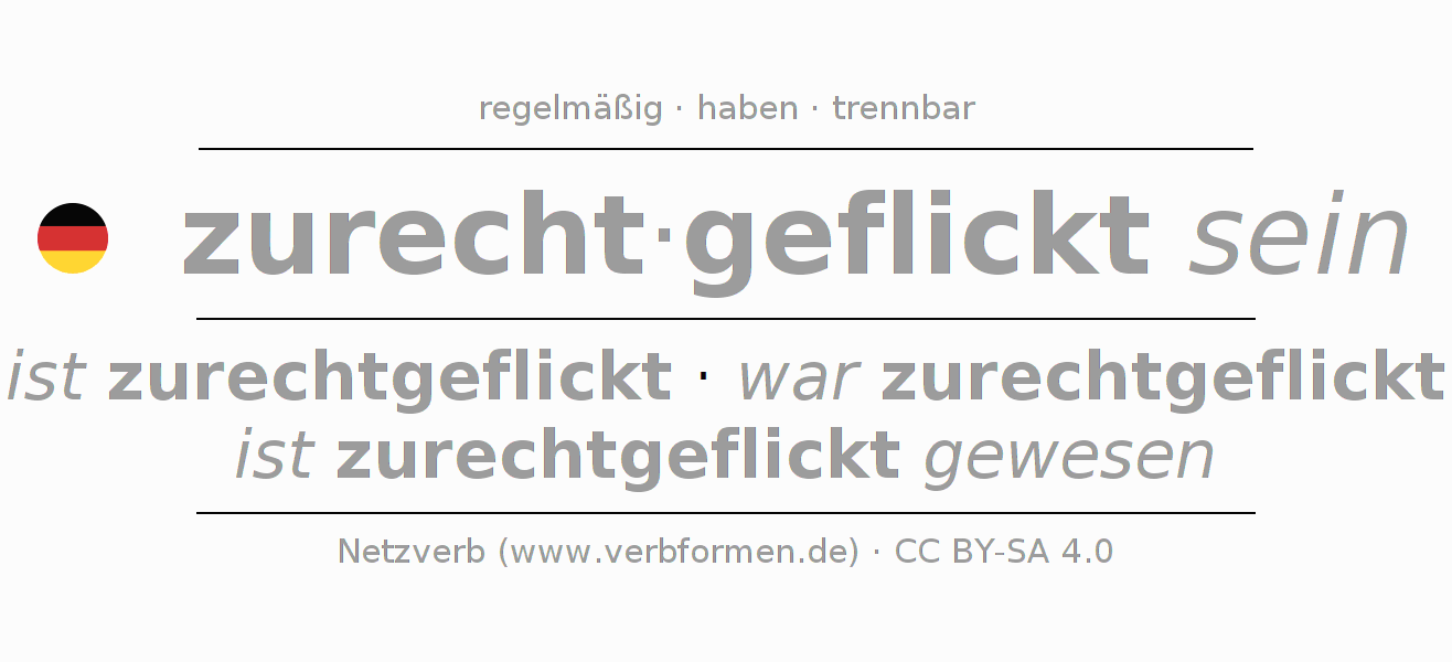 Arbeitsblätter für die Konjugation des Verbs zurechtflicken 〈Zustandspassiv〉
