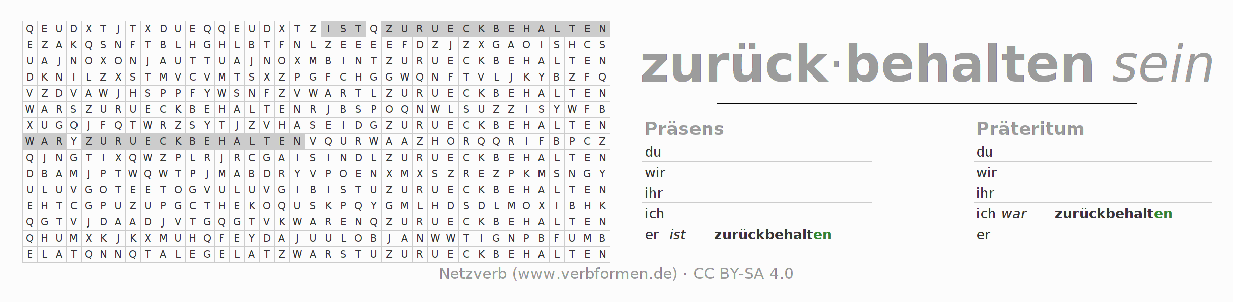 Suchsel, Suchworträtsel für alle Formen des Verbs zurückbehalten