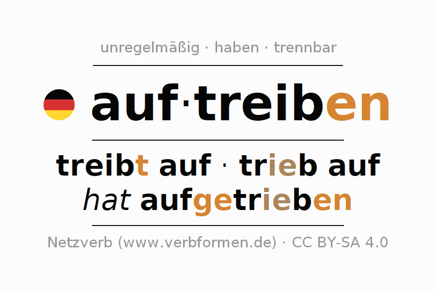 treibt auf · trieb auf · hat aufgetrieben