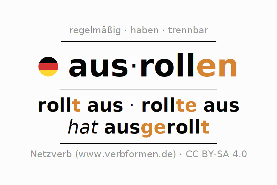 - Präsens: roll(e) (du) aus, rollen wir aus, rollt (ihr) aus, rollen Sie aus