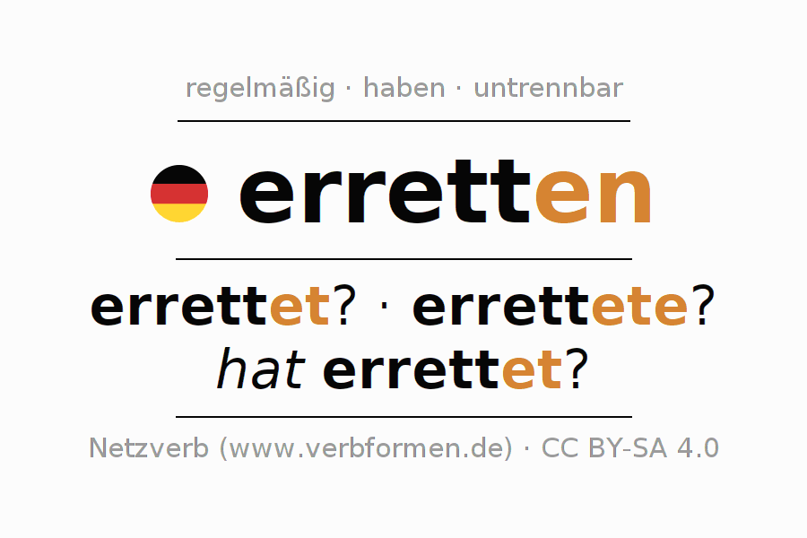 Beispiele für die Verwendung der Konjugation des Verbs erretten. Dabei handelt es sich um reale Sätze und um Sätze aus dem Projekt Tatoeba. Für jede konjugierte Form wird ein solcher Beispielsatz angezeigt. Die Verbform wird dabei hervorgehoben. Sind mehrere Sätze vorhanden, wird zufällig ein Beispiel mit dem deutschen Verb erretten ausgewählt. Um die Konjugation nicht nur an den Beispielen nachzuvollziehen, sondern auch zu trainieren, stehen Arbeitsblätter für das Verb erretten zur Verfügung.