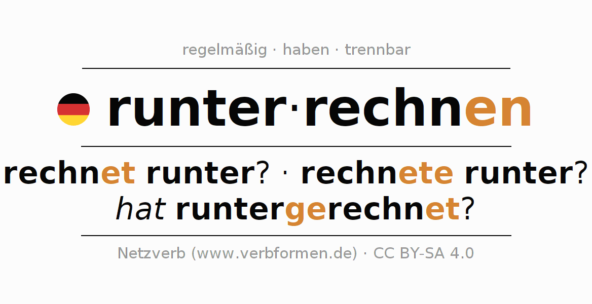 Bedeutungen und Synonyme von runterrechnenBildungsregeln