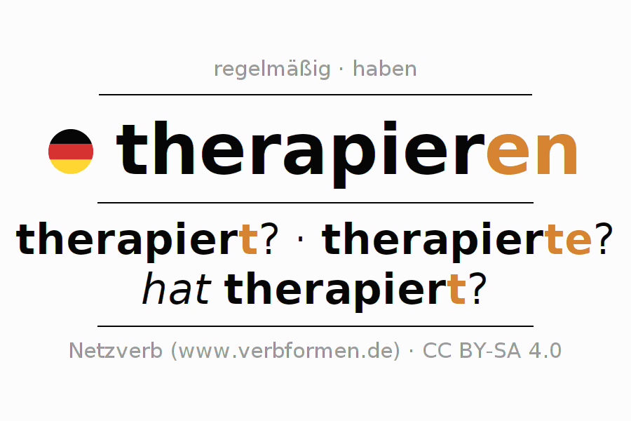 Beispiele für die Verwendung der Konjugation des Verbs therapieren. Dabei handelt es sich um reale Sätze und um Sätze aus dem Projekt Tatoeba. Für jede konjugierte Form wird ein solcher Beispielsatz angezeigt. Die Verbform wird dabei hervorgehoben. Sind mehrere Sätze vorhanden, wird zufällig ein Beispiel mit dem deutschen Verb therapieren ausgewählt. Um die Konjugation nicht nur an den Beispielen nachzuvollziehen, sondern auch zu trainieren, stehen Arbeitsblätter für das Verb therapieren zur Verfügung.