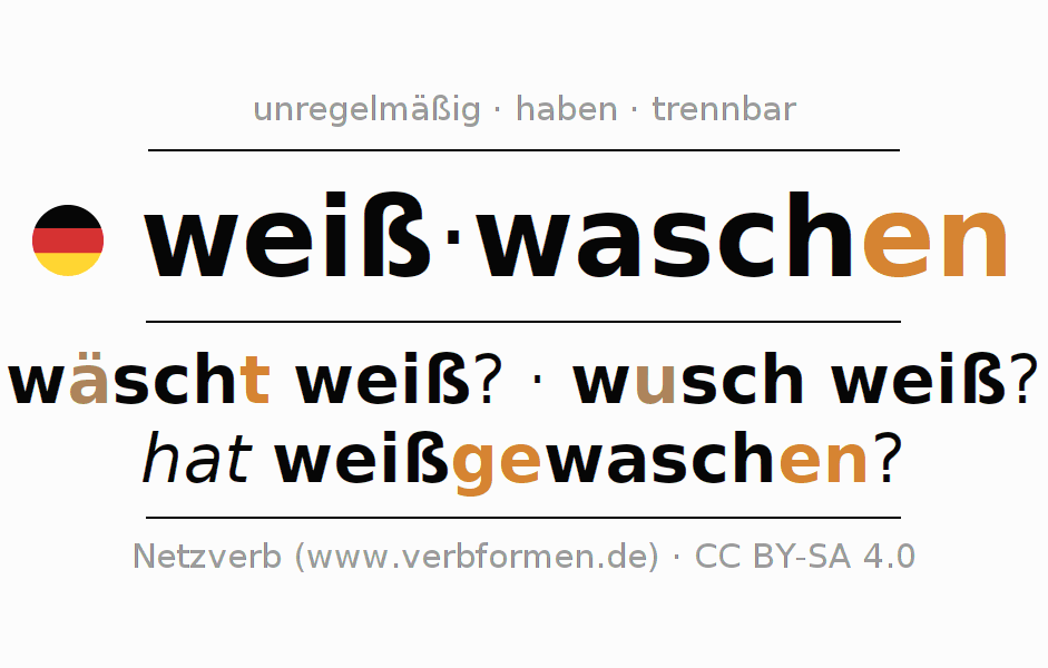 - Wie konjugiert man weißwaschen im Infinitiv?