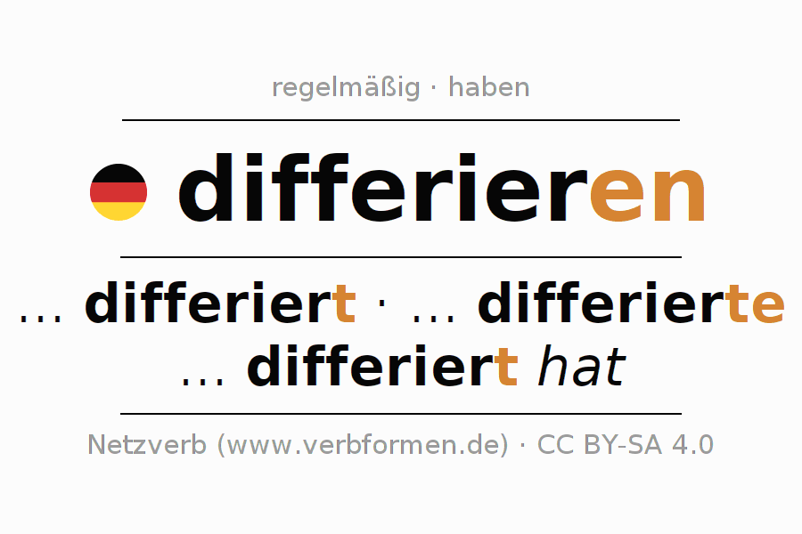 Beispiele für die Verwendung der Konjugation des Verbs differieren. Dabei handelt es sich um reale Sätze und um Sätze aus dem Projekt Tatoeba. Für jede konjugierte Form wird ein solcher Beispielsatz angezeigt. Die Verbform wird dabei hervorgehoben. Sind mehrere Sätze vorhanden, wird zufällig ein Beispiel mit dem deutschen Verb differieren ausgewählt. Um die Konjugation nicht nur an den Beispielen nachzuvollziehen, sondern auch zu trainieren, stehen Arbeitsblätter für das Verb differieren zur Verfügung.