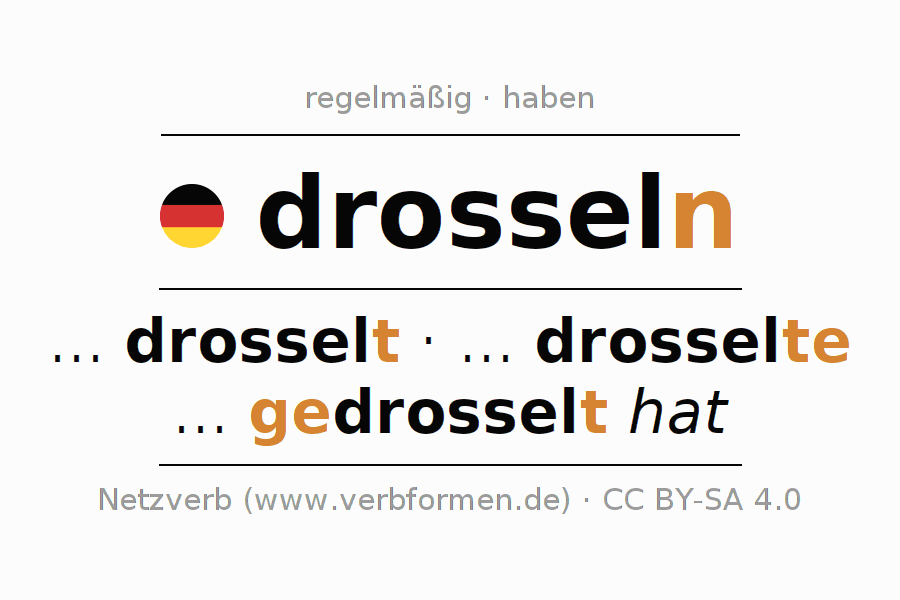 Beispiele für die Verwendung der Konjugation des Verbs drosseln. Dabei handelt es sich um reale Sätze und um Sätze aus dem Projekt Tatoeba. Für jede konjugierte Form wird ein solcher Beispielsatz angezeigt. Die Verbform wird dabei hervorgehoben. Sind mehrere Sätze vorhanden, wird zufällig ein Beispiel mit dem deutschen Verb drosseln ausgewählt. Um die Konjugation nicht nur an den Beispielen nachzuvollziehen, sondern auch zu trainieren, stehen Arbeitsblätter für das Verb drosseln zur Verfügung.