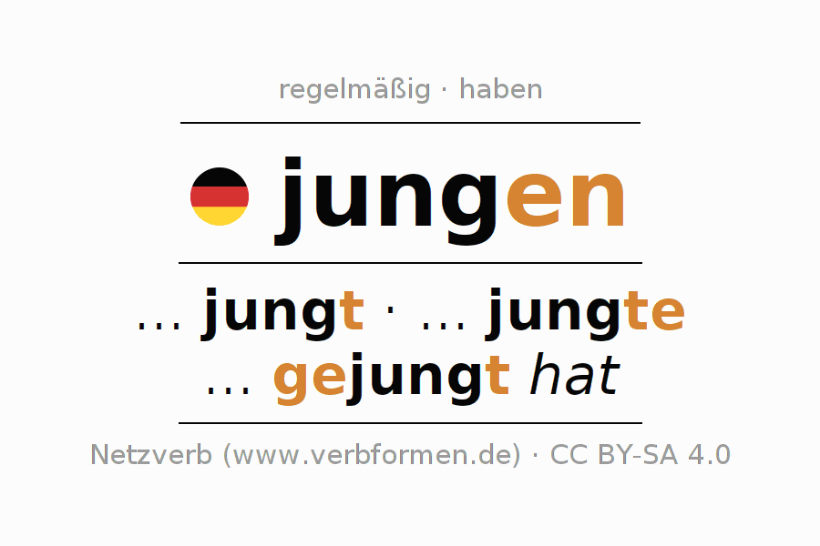 Beispiele für die Verwendung der Konjugation des Verbs jungen. Dabei handelt es sich um reale Sätze und um Sätze aus dem Projekt Tatoeba. Für jede konjugierte Form wird ein solcher Beispielsatz angezeigt. Die Verbform wird dabei hervorgehoben. Sind mehrere Sätze vorhanden, wird zufällig ein Beispiel mit dem deutschen Verb jungen ausgewählt. Um die Konjugation nicht nur an den Beispielen nachzuvollziehen, sondern auch zu trainieren, stehen Arbeitsblätter für das Verb jungen zur Verfügung.