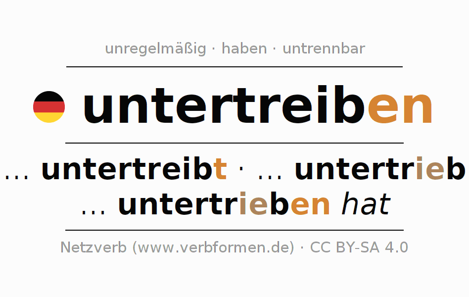 Beispiele für die Verwendung der Konjugation des Verbs untertreiben. Dabei handelt es sich um reale Sätze und um Sätze aus dem Projekt Tatoeba. Für jede konjugierte Form wird ein solcher Beispielsatz angezeigt. Die Verbform wird dabei hervorgehoben. Sind mehrere Sätze vorhanden, wird zufällig ein Beispiel mit dem deutschen Verb untertreiben ausgewählt. Um die Konjugation nicht nur an den Beispielen nachzuvollziehen, sondern auch zu trainieren, stehen Arbeitsblätter für das Verb untertreiben zur Verfügung.