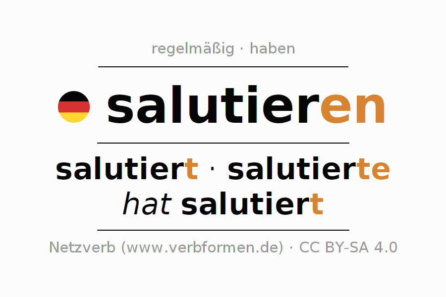 Beispiele für die Verwendung der Konjugation des Verbs salutieren. Dabei handelt es sich um reale Sätze und um Sätze aus dem Projekt Tatoeba. Für jede konjugierte Form wird ein solcher Beispielsatz angezeigt. Die Verbform wird dabei hervorgehoben. Sind mehrere Sätze vorhanden, wird zufällig ein Beispiel mit dem deutschen Verb salutieren ausgewählt. Um die Konjugation nicht nur an den Beispielen nachzuvollziehen, sondern auch zu trainieren, stehen Arbeitsblätter für das Verb salutieren zur Verfügung.
