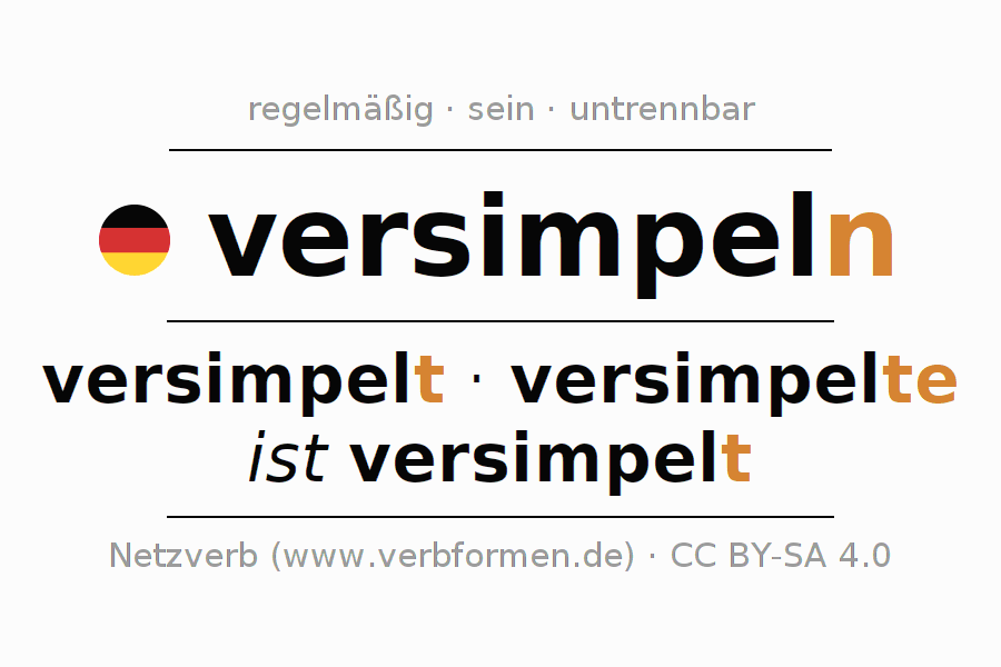 Beispiele für die Verwendung der Konjugation des Verbs versimpeln. Dabei handelt es sich um reale Sätze und um Sätze aus dem Projekt Tatoeba. Für jede konjugierte Form wird ein solcher Beispielsatz angezeigt. Die Verbform wird dabei hervorgehoben. Sind mehrere Sätze vorhanden, wird zufällig ein Beispiel mit dem deutschen Verb versimpeln (ist) ausgewählt. Um die Konjugation nicht nur an den Beispielen nachzuvollziehen, sondern auch zu trainieren, stehen Arbeitsblätter für das Verb versimpeln zur Verfügung.