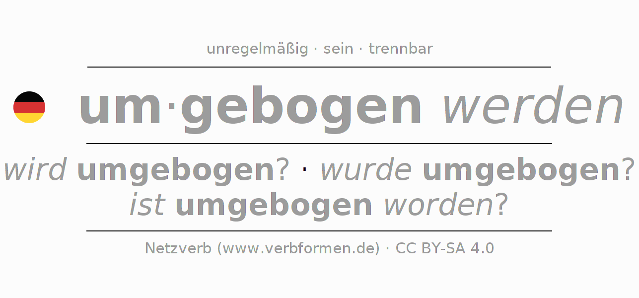 Beispielsätze für das Verb umbiegen (ist) 〈Vorgangspassiv〉 〈Fragesatz〉