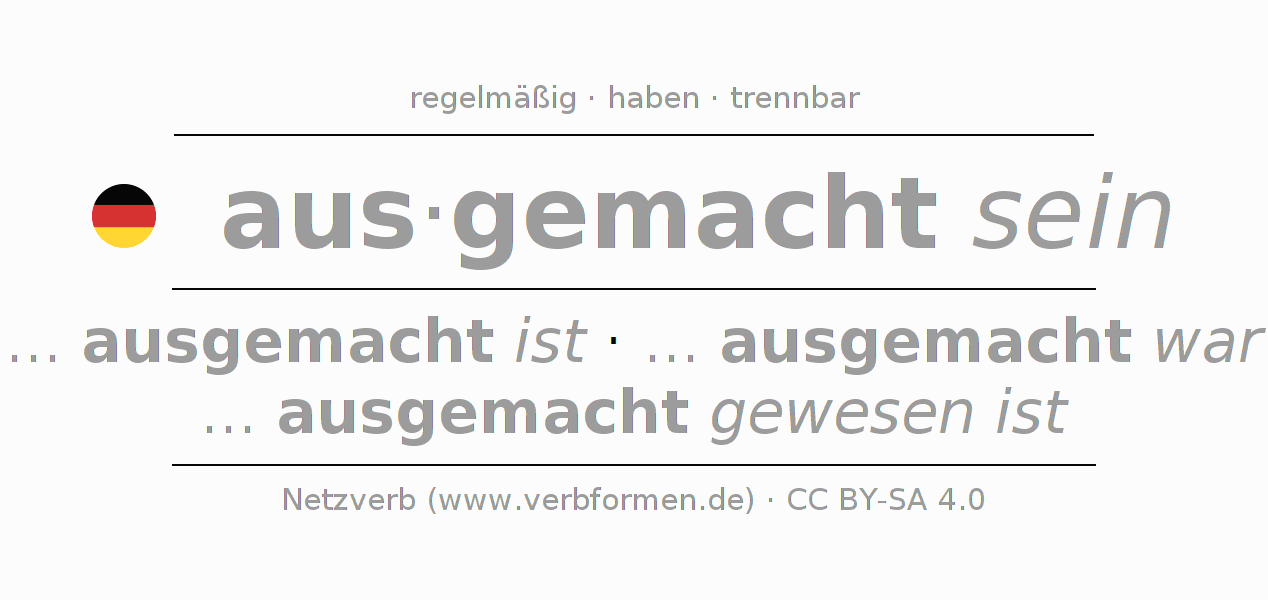 Beispiele für die Verwendung der Konjugation des Verbs ausmachen. Dabei handelt es sich um reale Sätze und um Sätze aus dem Projekt Tatoeba. Für jede konjugierte Form wird ein solcher Beispielsatz angezeigt. Die Verbform wird dabei hervorgehoben. Sind mehrere Sätze vorhanden, wird zufällig ein Beispiel mit dem deutschen Verb ausmachen ausgewählt. Um die Konjugation nicht nur an den Beispielen nachzuvollziehen, sondern auch zu trainieren, stehen Arbeitsblätter für das Verb ausmachen zur Verfügung.