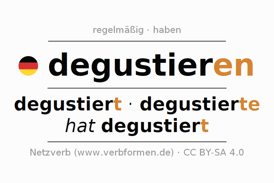 - Präsens: degustier(e) (du), degustieren wir, degustiert (ihr), degustieren Sie