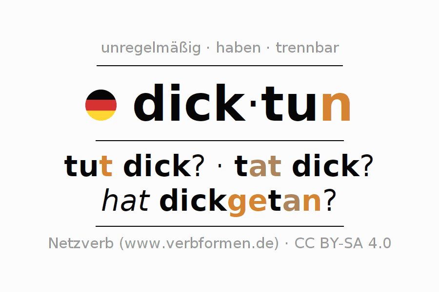 - Perfekt: habe ich dickgetan?, hast du dickgetan?, hat er dickgetan?, haben wir dickgetan?, habt ihr dickgetan?, haben sie dickgetan?