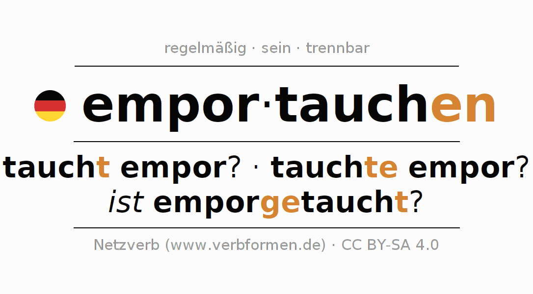 - Präsens: tauch(e) (du) empor, tauchen wir empor, taucht (ihr) empor, tauchen Sie empor