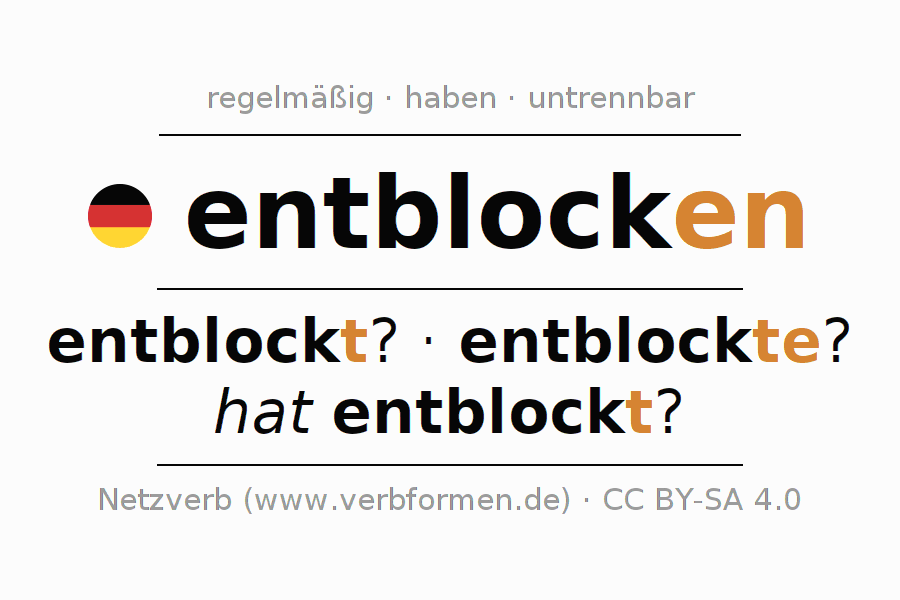 - Perfekt: habe ich entblockt?, hast du entblockt?, hat er entblockt?, haben wir entblockt?, habt ihr entblockt?, haben sie entblockt?