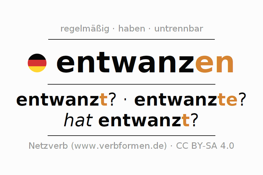 - Präsens: entwanz(e) ich?, entwanzt du?, entwanzt er?, entwanzen wir?, entwanzt ihr?, entwanzen sie?