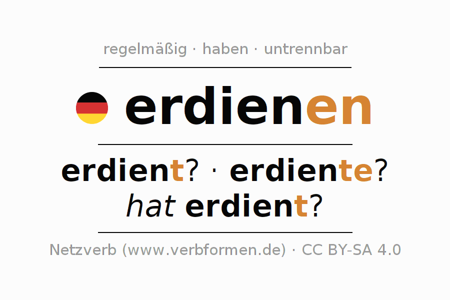 - Präsens: erdien(e) (du), erdienen wir, erdient (ihr), erdienen Sie