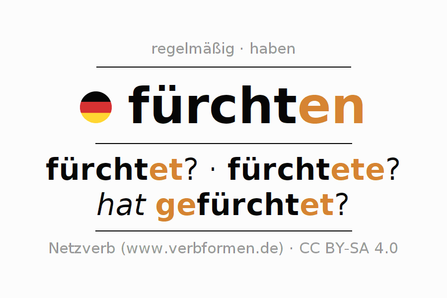 - Präsens: fürchte ich?, fürchtest du?, fürchte er?, fürchten wir?, fürchtet ihr?, fürchten sie?