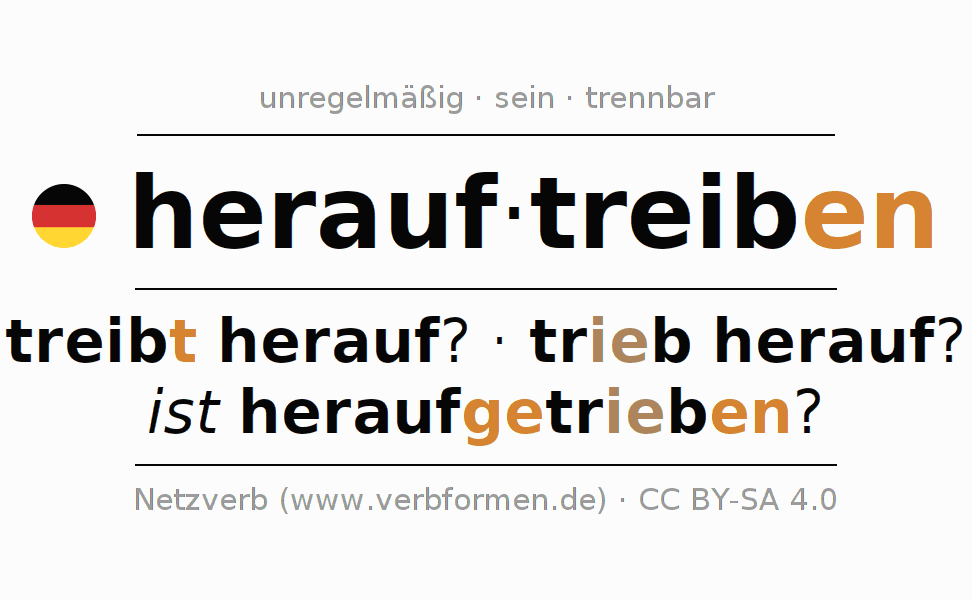- Präsens: treib(e) (du) herauf, treiben wir herauf, treibt (ihr) herauf, treiben Sie herauf
