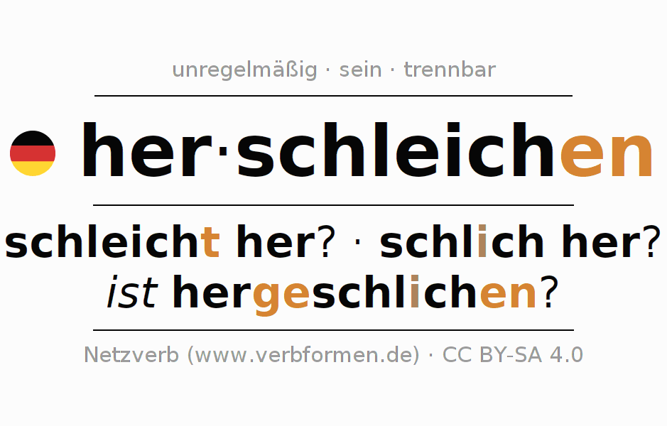 Bedeutungen und Synonyme von herschleichen (ist)Bildungsregeln